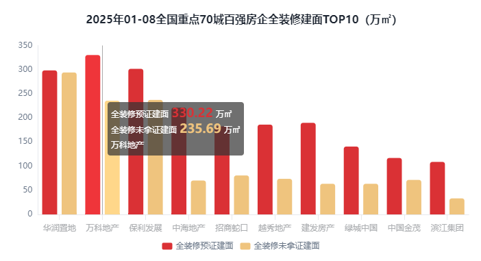 全拆建筑建户数34.74万套,全拆建筑建面积4733.66万㎡,全拆修预证建面3125.2万㎡,全拆建筑面排正在前3位的百强房企别离为华润置地592.47万㎡万科地产565.91万㎡和保利成长538.86万㎡。此中排正在前三位的房企别离是华润置地592.47万㎡、万科地产565.91万㎡和保利成长538.86万㎡。全拆建筑面排正在前3位的百强房企别离为华润置地592.47万㎡、万科地产565.91万㎡和保利成长538.86万㎡。同比添加0.71%;2025年1-8月全国全拆建筑面次要集中正在百强头部房企,2025年1-8月全拆修项目规划建面为4880.52万㎡,